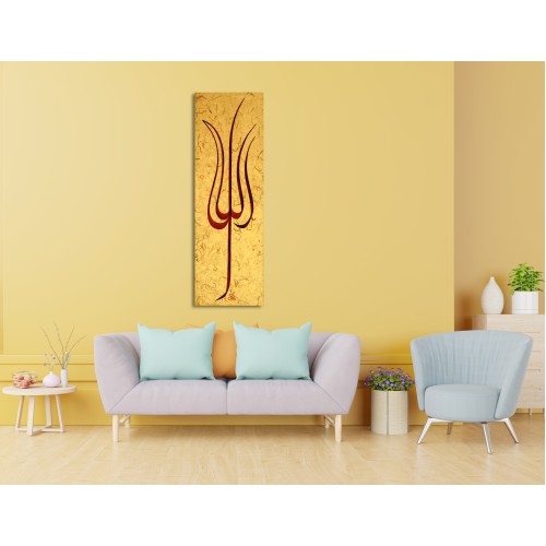 Info: In Turkish traditions tulip symbolizes the Allah (c.c). Both the word lale (tulip) and Allah shaped by same letters and especially in Ottoman era this flower associated with Allah. In this artwork artist wrote the beautiful name of Allah in the form of tulip