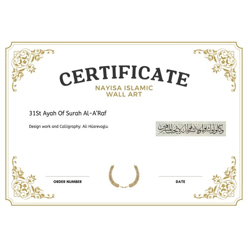 Arabic Script: وَكُلُوا وَاشْرَبُوا وَلاَ تُسْرِفُوا ۚ إِنَّهُ لاَ يُحِبُّ الْمُسْرِفِي