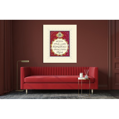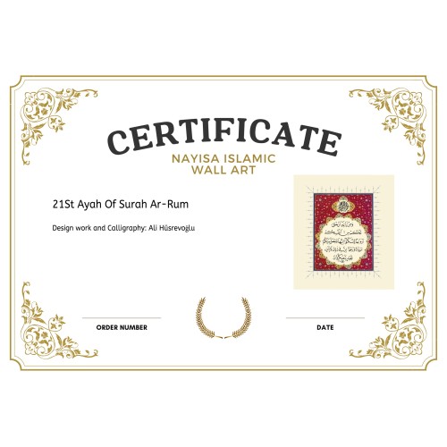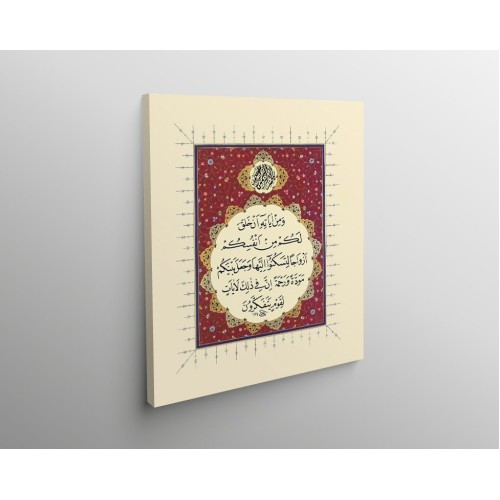 Arabic Script: وَمِ‍‌‍ن‌ْ ‌آيَاتِهِ ‌أَ‌ن‌ْ خَ‍‍لَ‍‍قَ لَكُمْ مِ‍‌‍ن‌ْ ‌أَ‌ن‍‍فُسِكُمْ ‌أَ‌زْ‌وَ‌اجاً لِتَسْكُنُ‍‍وا ‌إِلَيْهَا وَجَعَلَ بَيْنَكُمْ مَوَ‌دَّةً ‌وَ‌‍رَحْمَةً ۚ ‌إِنّ‌َ فِي ‌ذَلِكَ لَآي‍‍َاتٍ لِ‍‍قَ‍‍‍وْمٍ يَتَفَكَّرُ‌ونَ