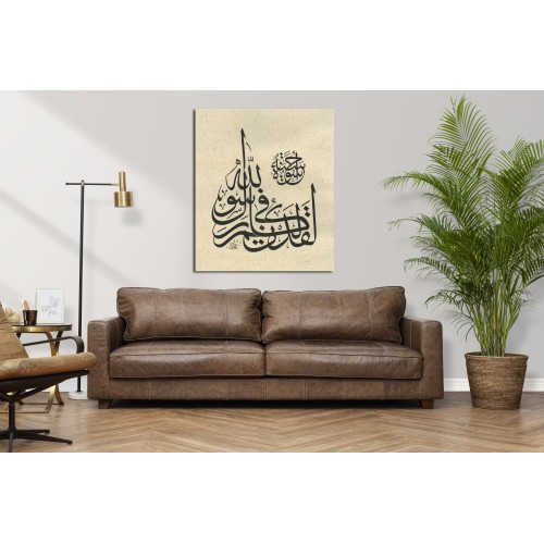 Arabic Script: لَ‍‍قَ‍‍‍دْ‌ ك‍‍َانَ لَكُمْ فِي ‌‍رَس‍‍ُ‍ولِ ‌اللَّ‍‍هِ ‌أُسْوَةٌ حَسَنَة
