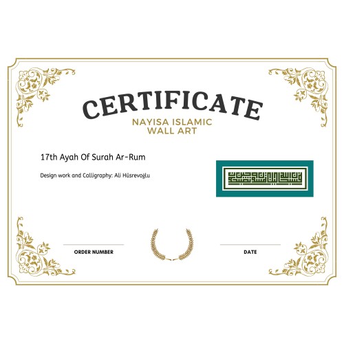 Arabic Script: فَسُ‍‍بْ‍‍ح‍‍َانَ ‌اللَّ‍‍هِ ح‍‍ِ‍ي‍‍نَ تُمْس‍‍ُ‍ونَ ‌وَح‍‍ِ‍ي‍‍نَ تُ‍‍‍‍صْ‍‍بِحُونَ