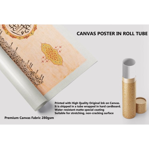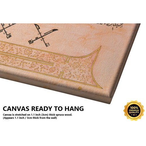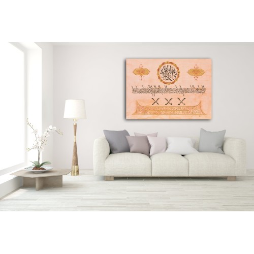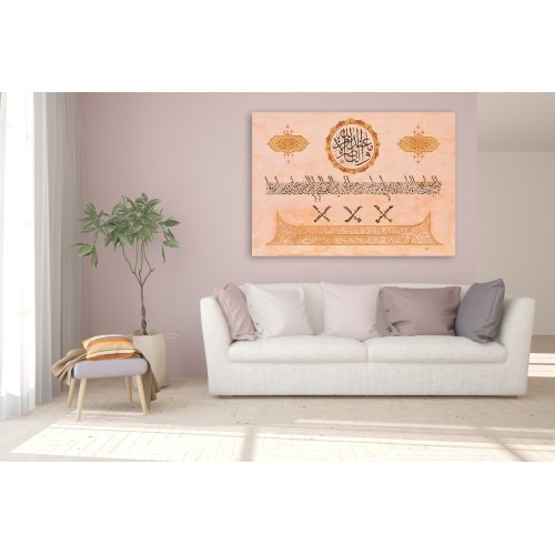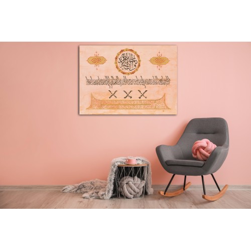 Information: This work is based on the fourteen martyrs of Badr. At top (circular writing) it writes, with thuluth style “ve me’n-nasru illê min ındi’llâh which means “Victory is only belongs to Allah” (Al-Anfal/10). Under that as a single row it there is the names of martyrs of Badr written with Jali Diwani style. Under that there are names of four people who stood up for Duel before Battle of Badr: