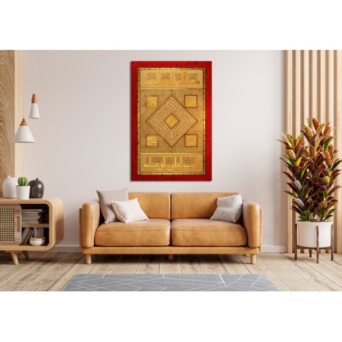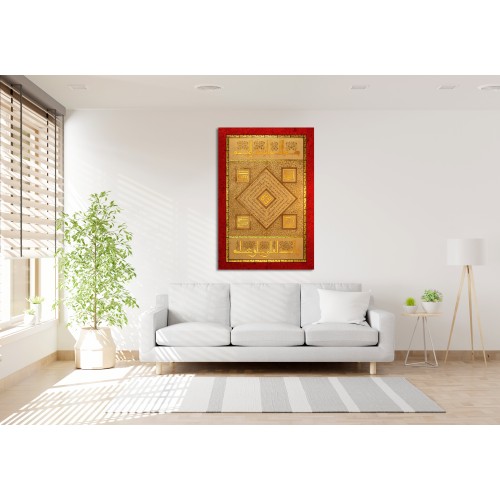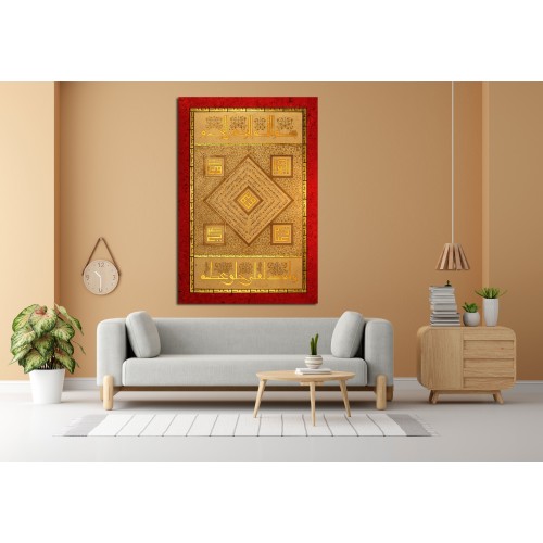 At the 4 corners of the circle there writes the names of first 4 caliphs and companions of Muhammad (pbuh):