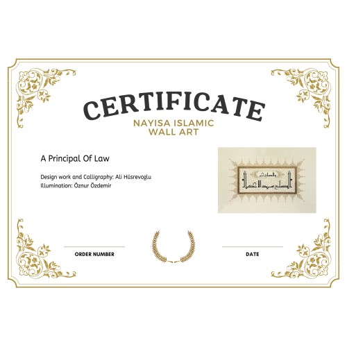 Transliteration (Larger text at bottom): es-sulhu seyyidü’l-ahkâm.
