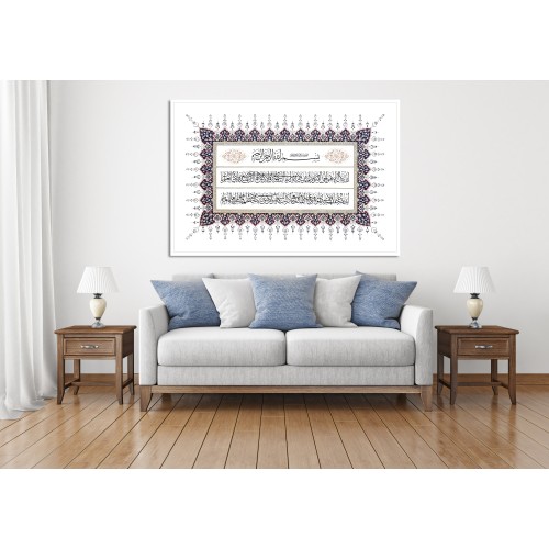 Translation: Allah! There is no deity but Him, the Alive, the Eternal. Neither slumber nor sleep overtaketh Him. Unto Him belongeth whatsoever is in the heavens and hatsoever is in the earth. Who could intercede in His presence without His permission? He knoweth that which is in front of them and that which is behind them, while they encompass nothing of His knowledge except what He wills. His throne includeth the heavens and the earth, and He is never weary of preserving them. He is the Sublime, the Tremendous.