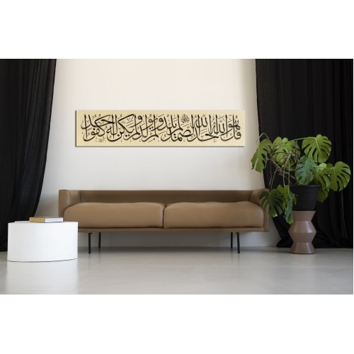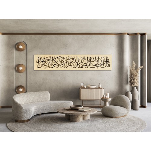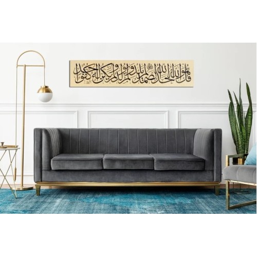 Transliteration: Qul Huwa Allāhu 'Aĥadun. Allāhu Aş-Şamadu. Lam Yalid Wa Lam Yūlad. Walam Yakun Lahu Kufūan Ahadun