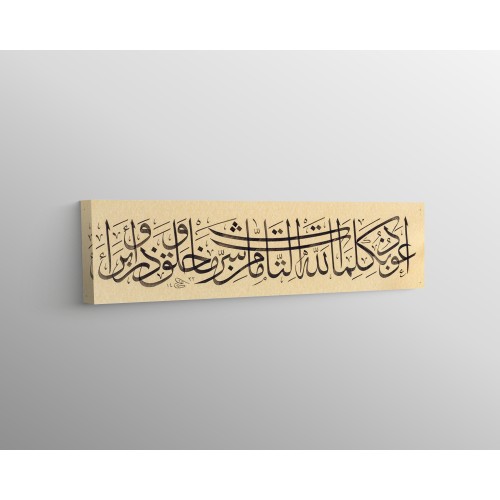 Transliteration: Eûzü bikelimâtillâhittâmmeti min şerri mâ haleka ve zerae ve berae.