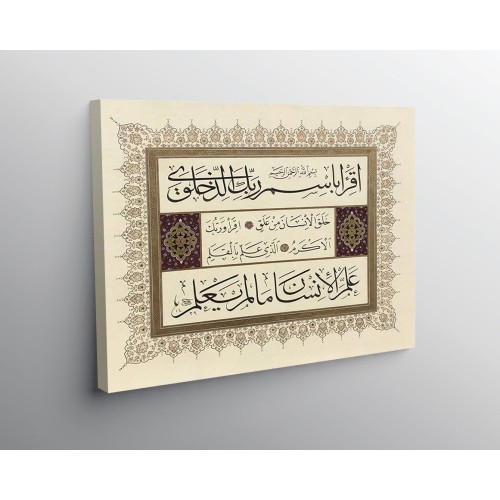 Arabic Script: ا‍‍‍‍قْ‍‍‍‍‍رَ‌أْ‌ بِاسْمِ ‌‍رَبِّكَ ‌الَّذِي خَ‍‍لَ‍‍قَ خَ‍‍لَ‍قَ ‌الإِ‌ن‍‍س‍‍َانَ مِ‍‌‍ن‌ْ عَلَ‍‍قٍ ا‍‍‍‍قْ‍‍‍‍‍رَ‌أْ وَ‌‍رَبُّكَ ‌الأَكْ‍رَمُ ‌الَّذِي عَلَّمَ بِ‌الْ‍‍‍‍قَ‍‍لَمِ عَلَّمَ ‌الإِ‌ن‍‍س‍‍َانَ مَا‌ لَمْ يَعْلَمْ