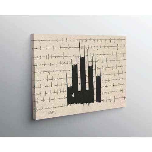 Info: Name of Allah is written in modern style with the imagination of the Dhikr (Utterance the name of Allah) of the human heart with every beat of it. It is like a muslims heart beats Allah in every beat.