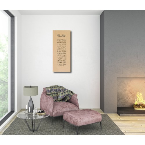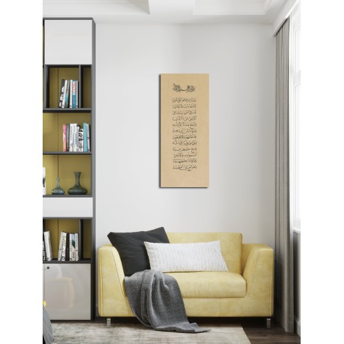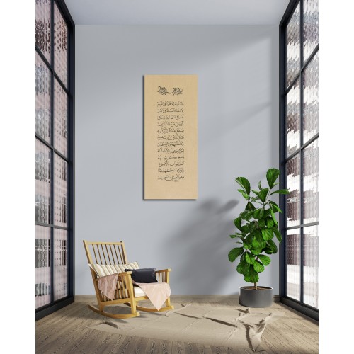 Translation: Allah! There is no deity but Him, the Alive, the Eternal. Neither slumber nor sleep overtaketh Him. Unto Him belongeth whatsoever is in the heavens and hatsoever is in the earth. Who could intercede in His presence without His permission? He knoweth that which is in front of them and that which is behind them, while they encompass nothing of His knowledge except what He wills. His throne includeth the heavens and the earth, and He is never weary of preserving them. He is the Sublime, the Tremendous.