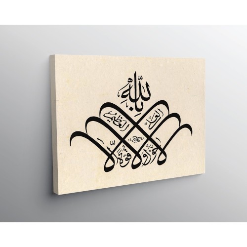 Arabic Script: لاَ حَوْلَ وَلاَ قُوَّةَ اِلاَّ بِاللهِ الْعَلِىِّ الْعَظِيمِ