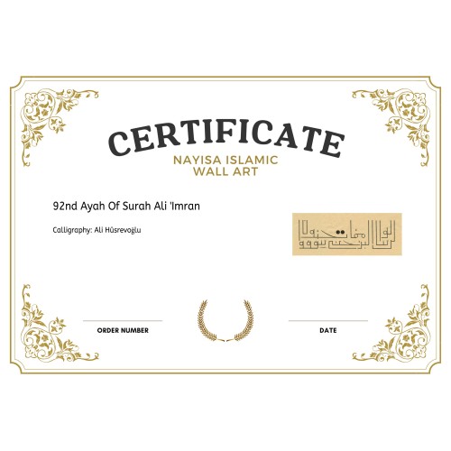 Transliteration: Lan tanalul birra hatta tunfiku mimma tuhibbun, wa ma tunfiku min shay'in fa inna Allaha bihi alim.