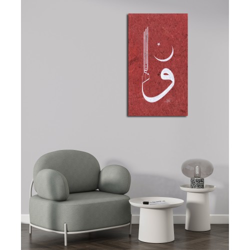 Information: The letter Nûn resembles an inkpot in shape. For this reason, the letter Nûn is designed to resemble both an inkpot and paper. The word Kalem (pen) is styled as a writing instrument due to the oath taken by the Pen. The letter Vav, which represents the oath, is designed to resemble celestial bodies in space.